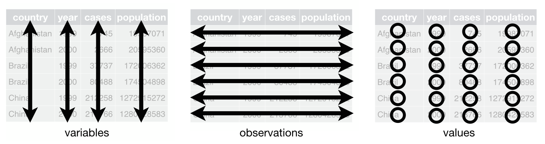 Source : Wickham & Grolemund (2017) R for Data Sciences: Visualize, Model, Transform, Tidy and Import Data