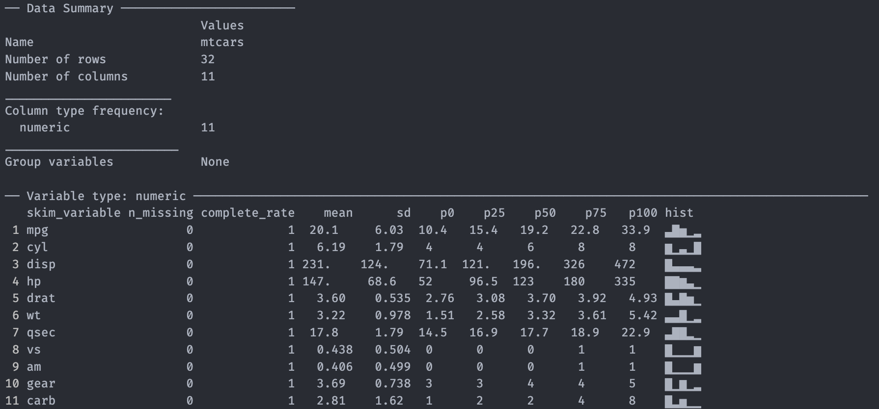 describe() du package {questionr}Décrit également les différentes variables d’un tableau de données