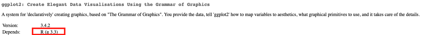 Les packages R peuvent dépendre d’une version spécifique de R (ou version minimale)